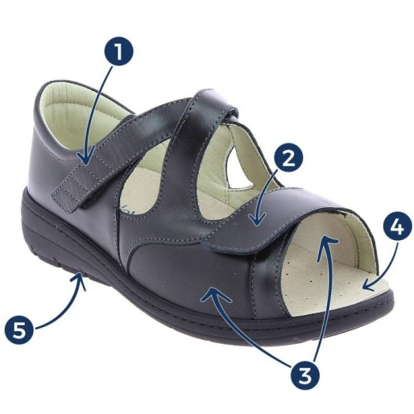 Cette sandale orthopédique convient aux personnes atteintes d’hallux valgus ou quintus varus. Adaptée à la reprise de la marche, elle maintient parfaitement le pied par une double bride auto-agrippante croisée sur le cou-de-pied. Les deux brides longues et découpables sont adaptées en cas de cous-de-pied volumineux.