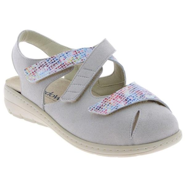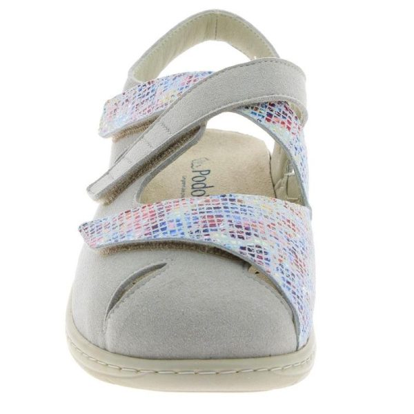 La sandale orthopédique femme Greta comporte un bout avant fermé pour protéger les orteils déformés et fragiles. Ses 3 brides auto-agrippantes permettent un réglage précis et s’adaptent aux pieds gonflés, déformés et sensibles. Un bride longue découpable est spécifiquement conçue pour les oedèmes.